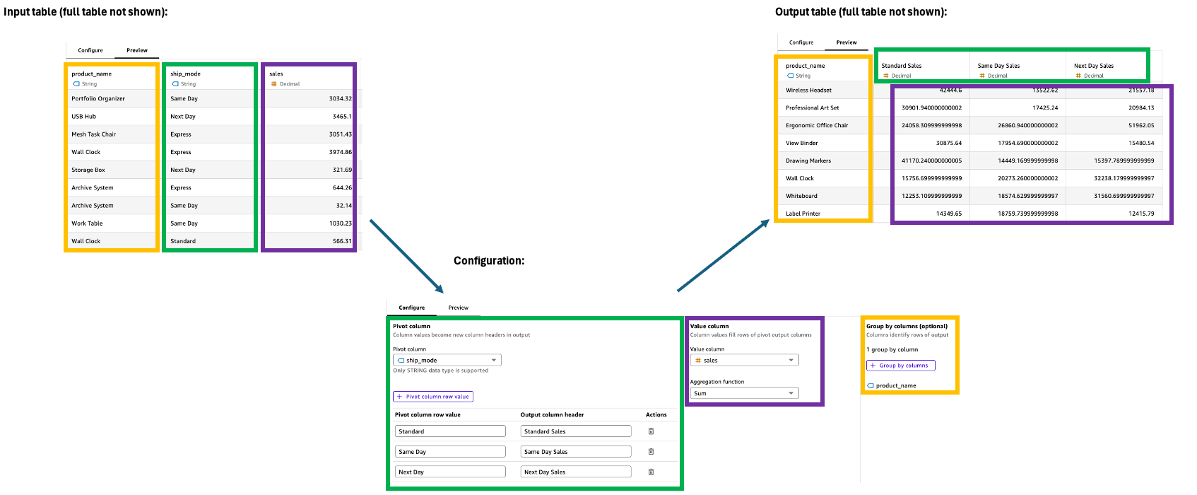 Intestazione delle colonne di output: personalizza le nuove intestazioni di colonna (l'impostazione predefinita sono i valori delle colonne pivot).